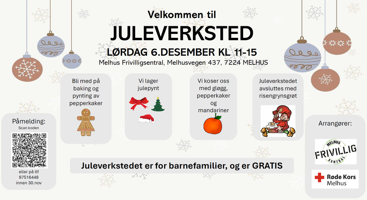 Lørdag 6.desember blir det juleverksted for barnefamilier.